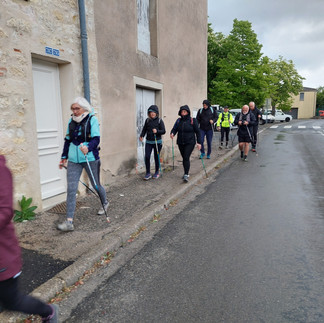 La boucle de Fayssac classique avec 14 marcheurs. Temps frais et humide. Des dégâts du gel dans quelques vignes...